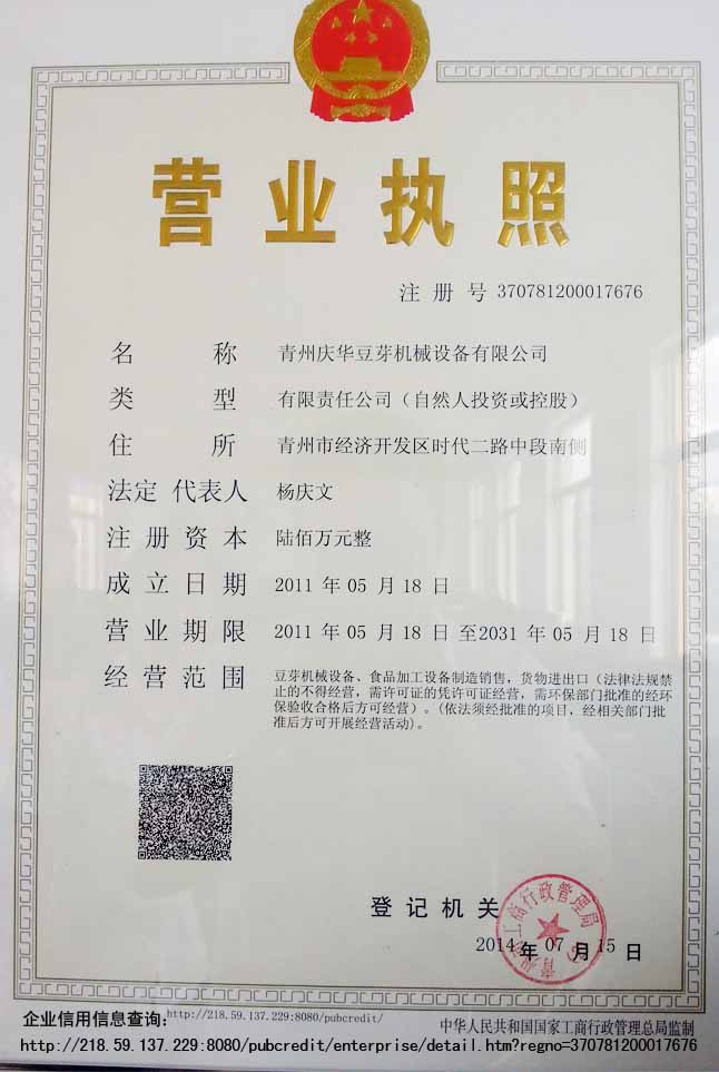 您好,歡迎光臨山東慶華豆芽機(jī)械設(shè)備有限公司! |